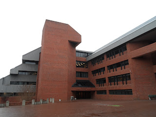 This morning I drove to another of my father's old universities, Georgetown. After the confusion of looking around Caltech trying to find the building he might have studied in I thought I'd ask him about it in advance. I got a text from him saying he'd been in the Inl or Languages building, on the river, with a big pendulum.